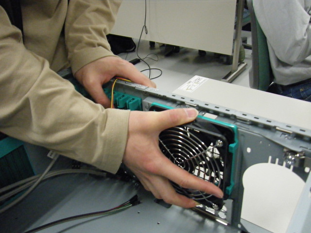 ここからケースに部品を取り付けていきます. まずは背面のファンをスライドさせて取り外します.