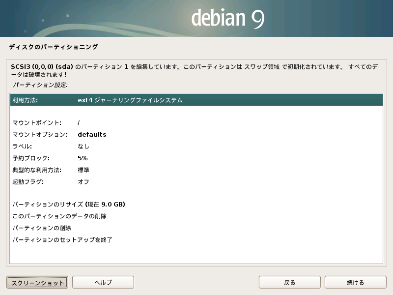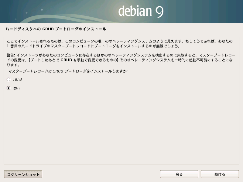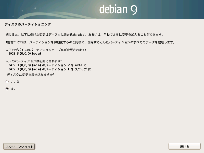 [画像サイズは 800 * 600 pix (スクリーンショットは /var/log/installer に保存される)]